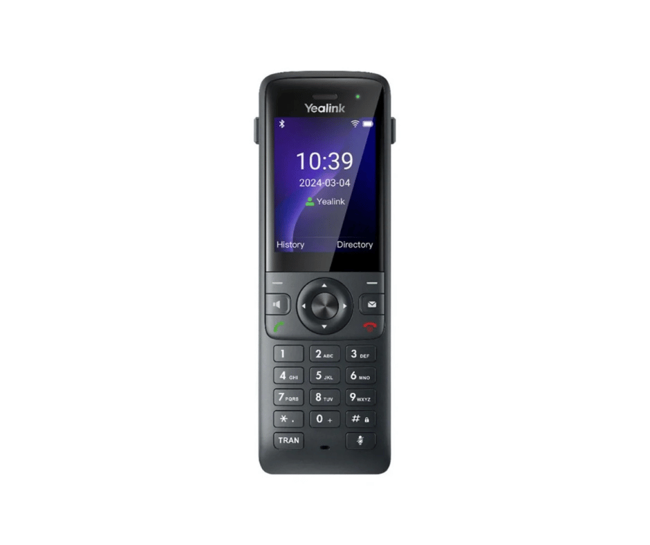 Yealink AX83H is a business Wi-Fi handset built for organisations that require reliable wireless voice communication across dynamic work environments. The Yealink AX83H supports up to four SIP accounts and uses dual-band Wi-Fi 6 technology to deliver stable connectivity. This handset suits offices, warehouses, retail spaces, and hospitality settings where mobility, clarity, and control matter.